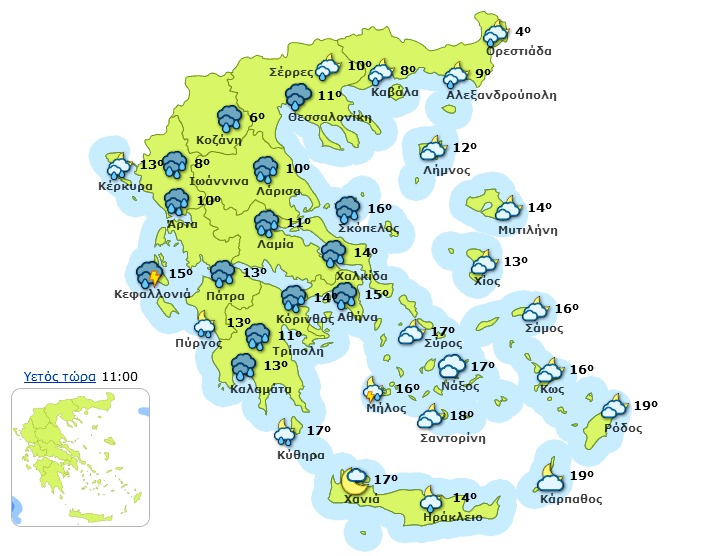 Στην υπόλοιπη χώρα ο καιρός θα κυλίσει μουντός με συννεφιά και βροχές κατά διαστήματα στην δυτική&κεντρική Μακεδονία στην Θεσσαλία μέχρι και την βορειοανατολική Στερεά. Πρόσκαιρα τα φαινόμενα σε ανατολική Θεσσαλία(Πήλιο-Μαγνησία) και στην βορειοανατολική Στερεά θα είναι έντονα.